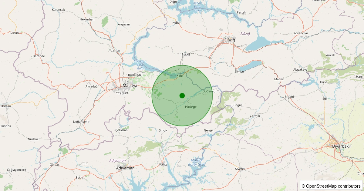 Son 7 gün içinde Pütürge - Aktarla Köyü noktasından 100 km yarıçap içerisinde meydana gelen diğer depremler: