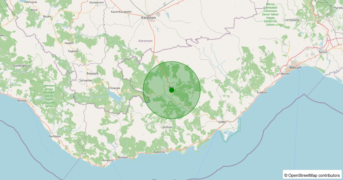 Son 7 gün içinde Mut - Kültür noktasından 100 km yarıçap içerisinde meydana gelen diğer depremler: