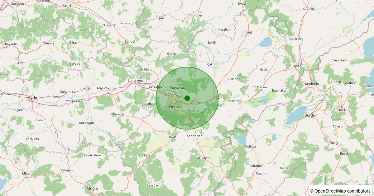Son 7 gün içinde Pamukkale - Kocadere Köyü noktasından 100 km yarıçap içerisinde meydana gelen diğer depremler: