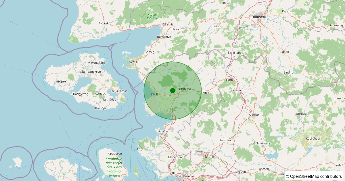 Son 7 gün içinde Bergama - Narlıca noktasından 100 km yarıçap içerisinde meydana gelen diğer depremler: