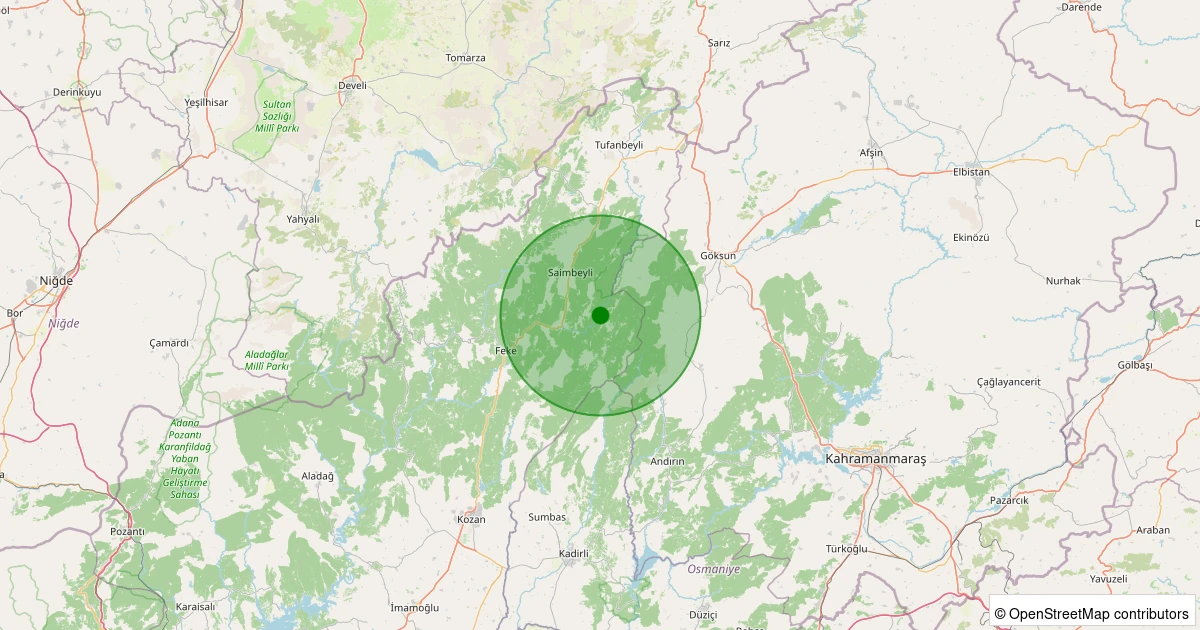 Son 7 gün içinde Saimbeyli - Aksaağaç noktasından 100 km yarıçap içerisinde meydana gelen diğer depremler: