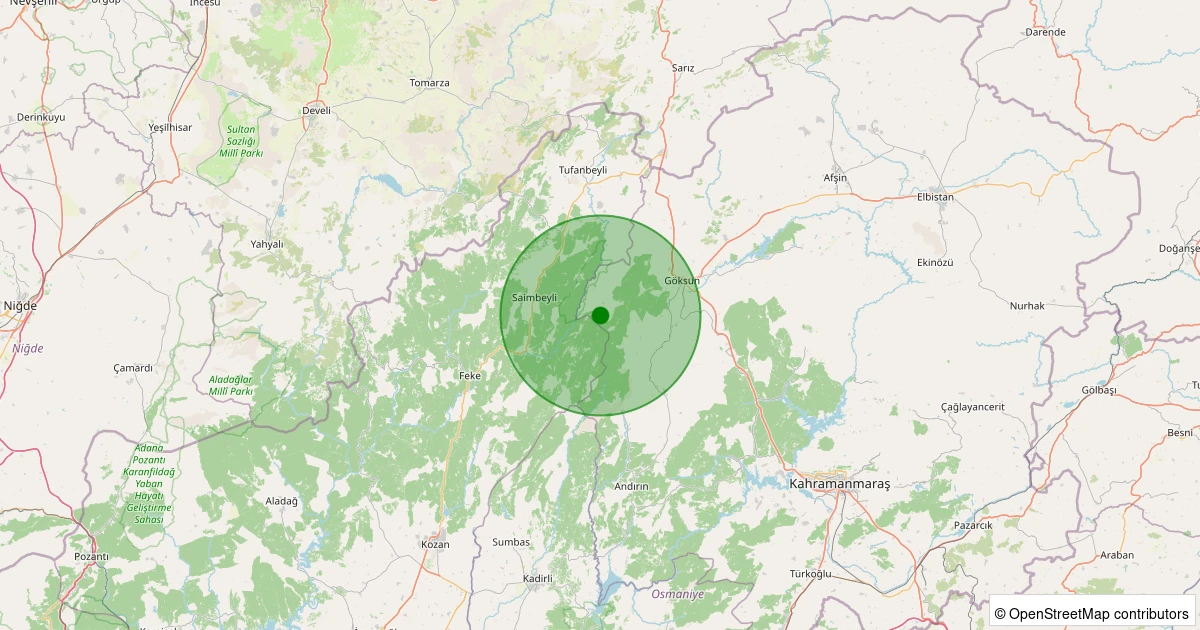 Son 7 gün içinde Göksun - Kaleboynu noktasından 100 km yarıçap içerisinde meydana gelen diğer depremler: