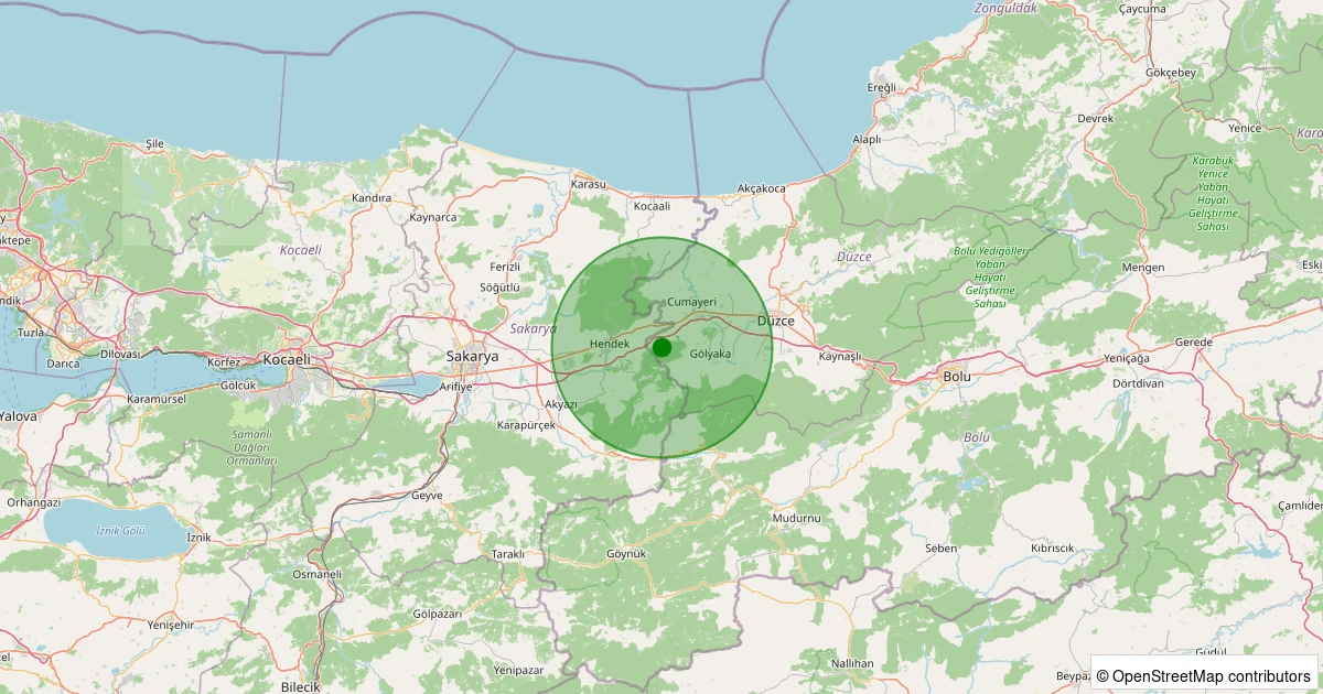 Son 7 gün içinde Gümüşova - Yeşilyayla Köyü noktasından 100 km yarıçap içerisinde meydana gelen diğer depremler: