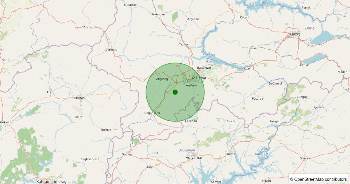 Son 7 gün içinde Yeşilyurt noktasından 100 km yarıçap içerisinde meydana gelen diğer depremler: