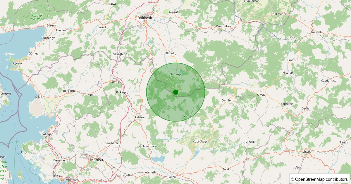Son 7 gün içinde Sındırgı - Kınık noktasından 100 km yarıçap içerisinde meydana gelen diğer depremler: