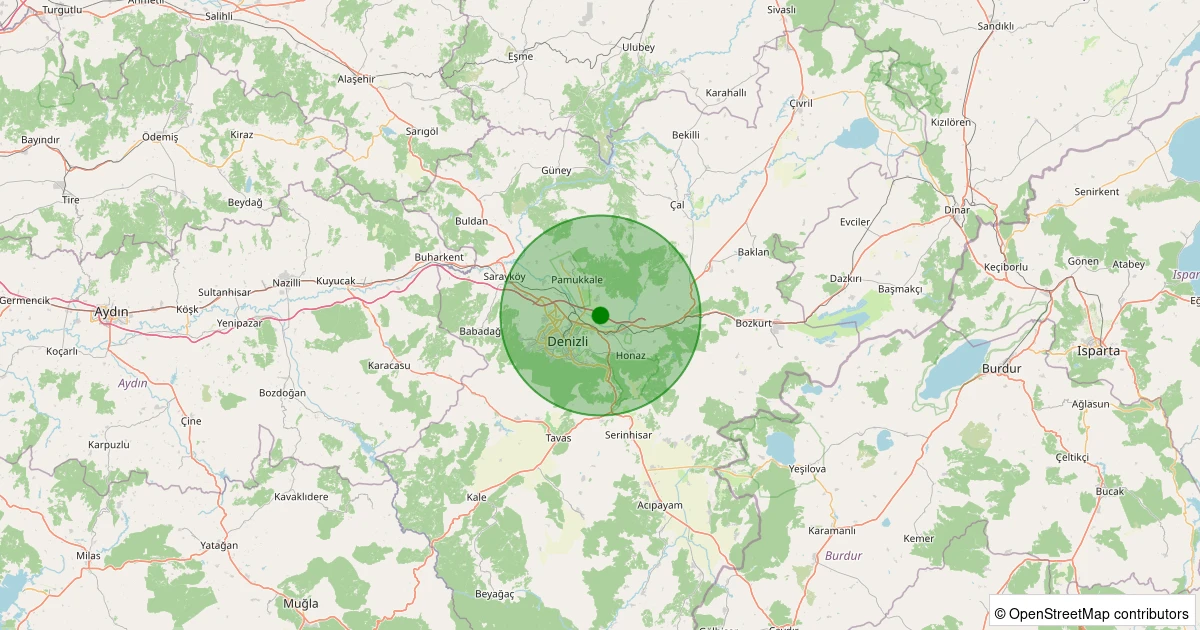 Son 7 gün içinde Pamukkale - Kocadere Köyü noktasından 100 km yarıçap içerisinde meydana gelen diğer depremler:
