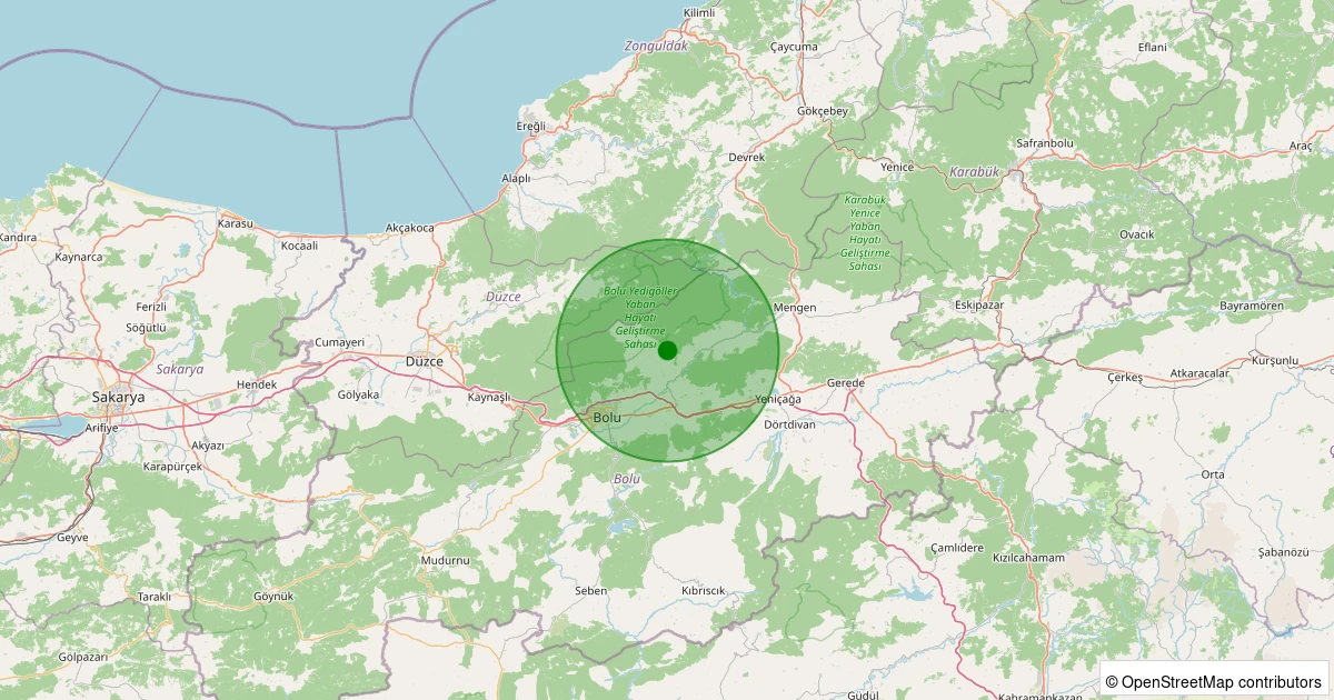 Son bir hafta içerisinde Bolu şehri Merkez noktasından 100 km yarıçap içerisinde toplamda 57 deprem kaydedilmiştir. Bu depremlerden en büyüğü 2.6 büyüklüğünde ve en sığ odaklısı 0.00 kilometre derinlikte gerçekleşmiştir.