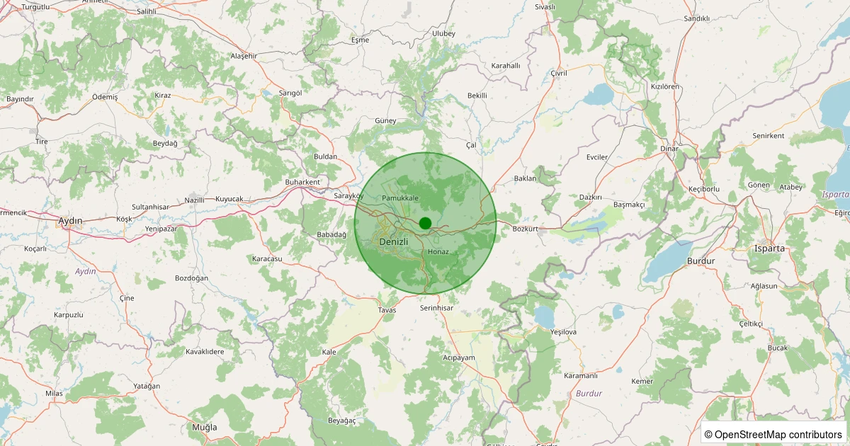 Son 7 gün içinde Pamukkale - Kocadere Köyü noktasından 100 km yarıçap içerisinde meydana gelen diğer depremler: