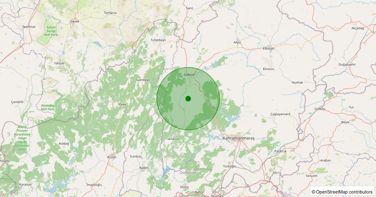 Son 7 gün içinde Onikişubat - Kumarlı noktasından 100 km yarıçap içerisinde meydana gelen diğer depremler: