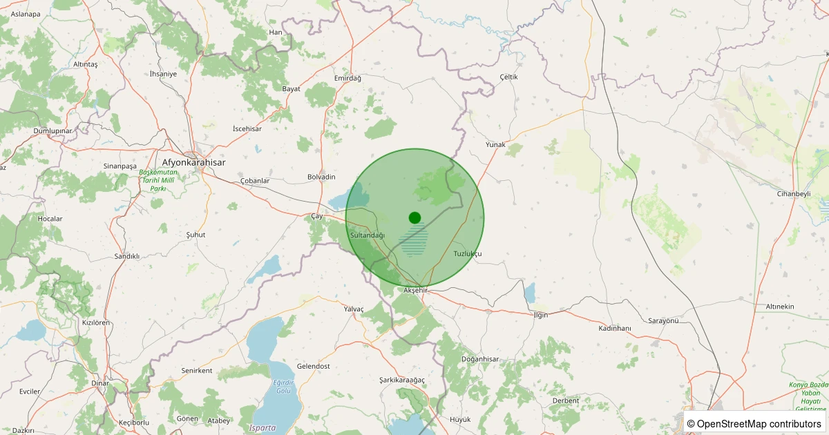 Son 7 gün içinde Sultandağı - Üçkuyu/Cınarlı Köyü noktasından 100 km yarıçap içerisinde meydana gelen diğer depremler: