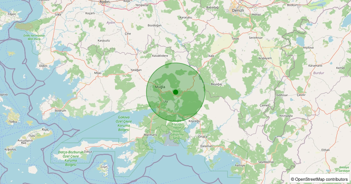 Son 7 gün içinde Menteşe - Yaraş noktasından 100 km yarıçap içerisinde meydana gelen diğer depremler: