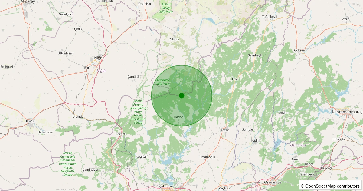 Son 7 gün içinde Yahyalı - Büyük Çakır noktasından 100 km yarıçap içerisinde meydana gelen diğer depremler: