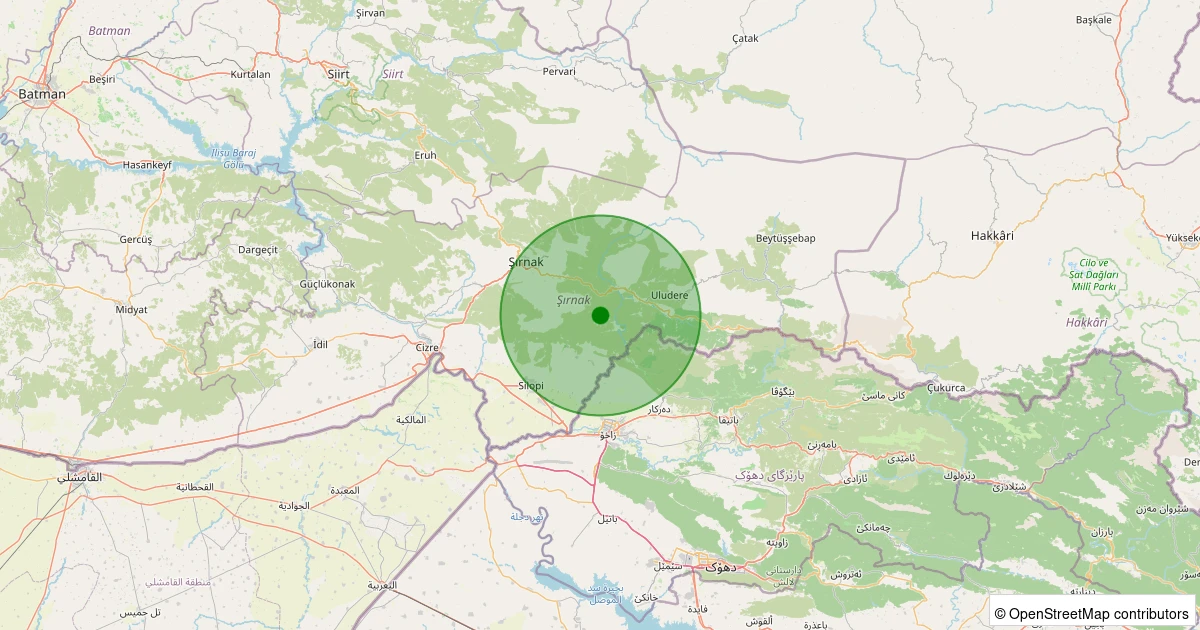 Son 7 gün içinde Silopi - Ballıkaya Köyü noktasından 100 km yarıçap içerisinde meydana gelen diğer depremler: