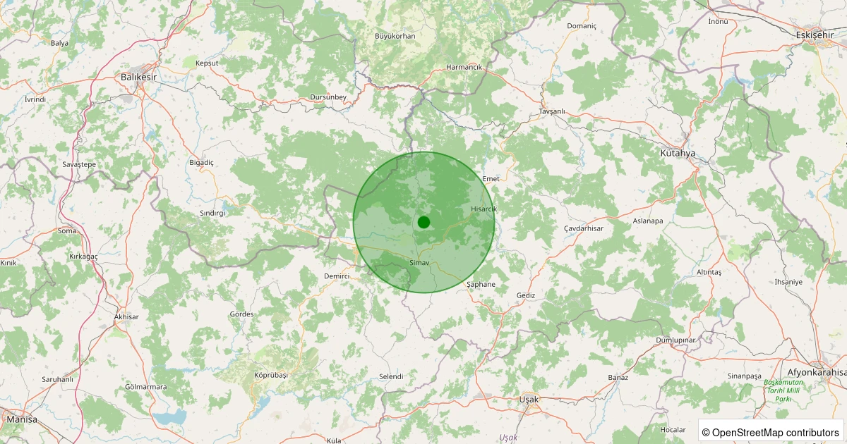 Son 7 gün içinde Simav - Yemişli Köyü noktasından 100 km yarıçap içerisinde meydana gelen diğer depremler: