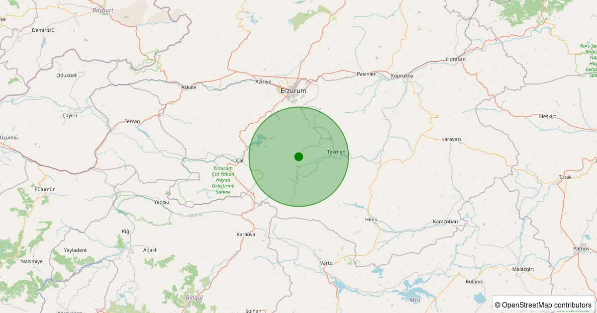 Son 7 gün içinde Tekman - Toptepe noktasından 100 km yarıçap içerisinde meydana gelen diğer depremler: