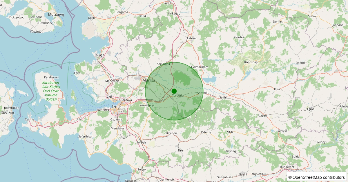Son 7 gün içinde Turgutlu - 8.Mıntıka noktasından 100 km yarıçap içerisinde meydana gelen diğer depremler: