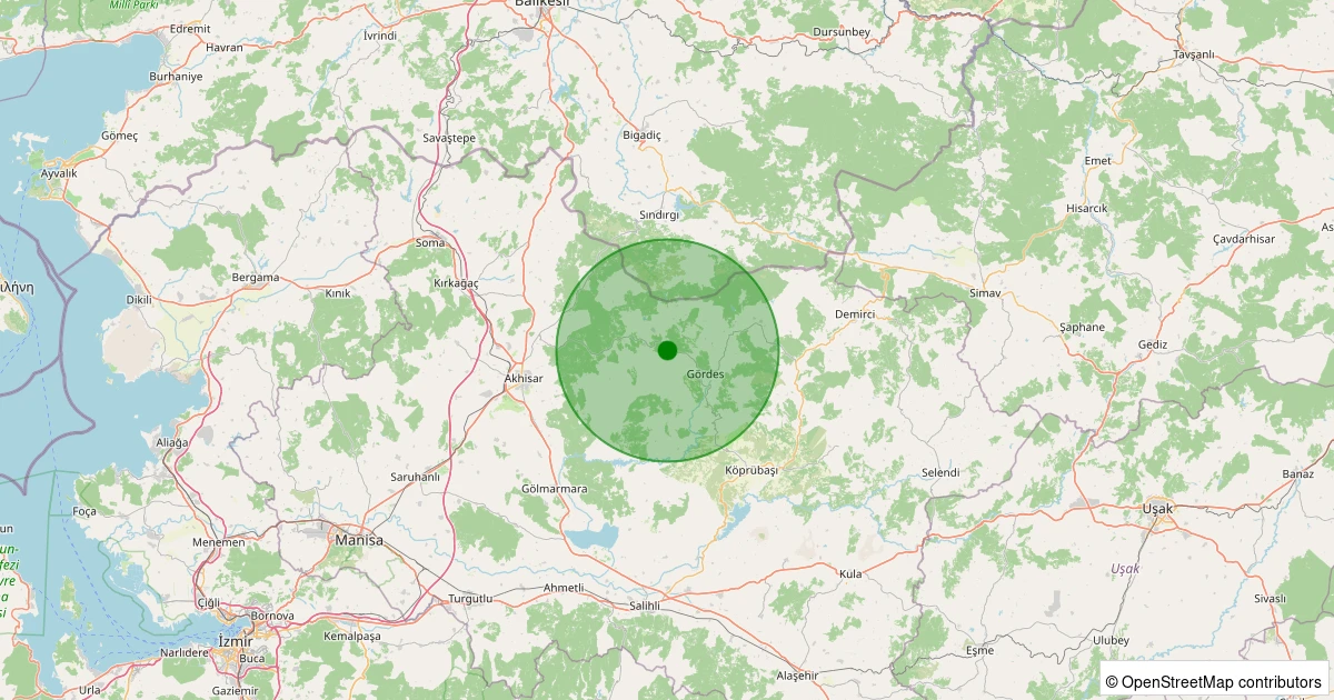 Son 7 gün içinde Gördes - Fundacık noktasından 100 km yarıçap içerisinde meydana gelen diğer depremler: