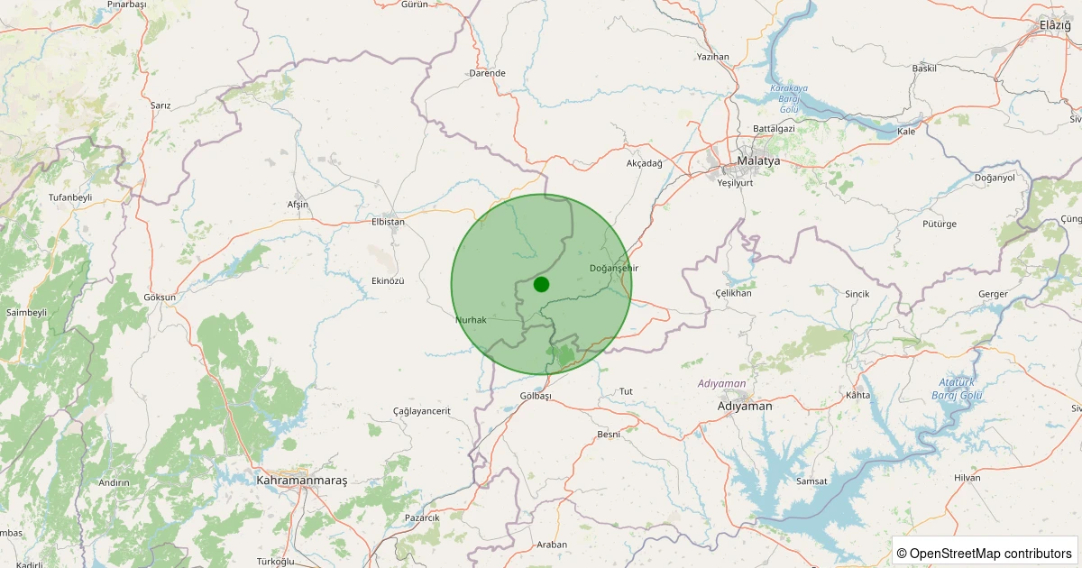 Son 7 gün içinde Doğanşehir - Beğre noktasından 100 km yarıçap içerisinde meydana gelen diğer depremler:
