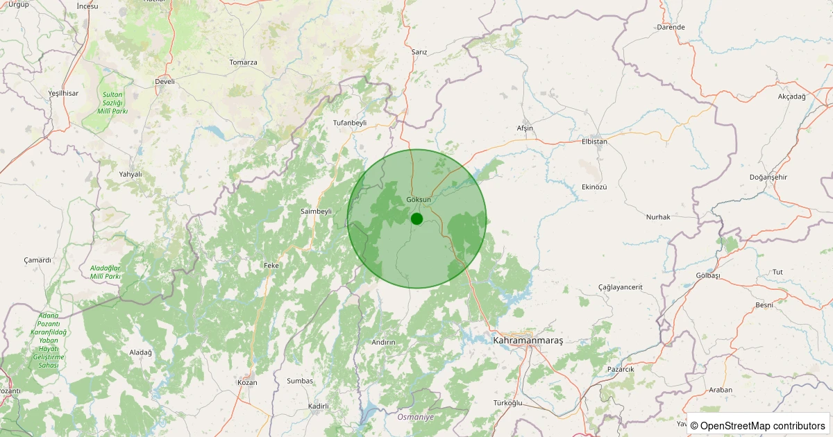 Son 7 gün içinde Göksun - Gölpınar noktasından 100 km yarıçap içerisinde meydana gelen diğer depremler: