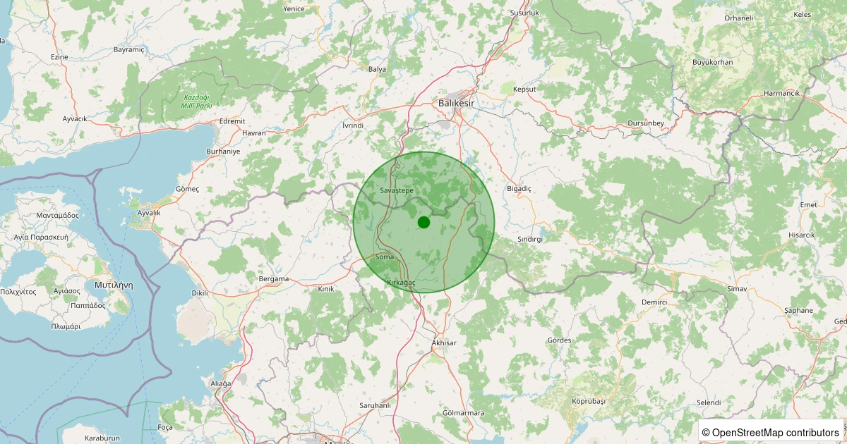 Son 7 gün içinde Soma - Çerkez/Sultanıye noktasından 100 km yarıçap içerisinde meydana gelen diğer depremler:
