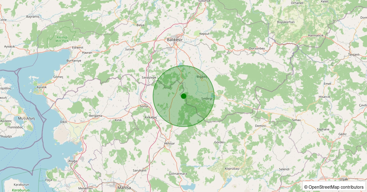Son 7 gün içinde Sındırgı - Eğridere noktasından 100 km yarıçap içerisinde meydana gelen diğer depremler: