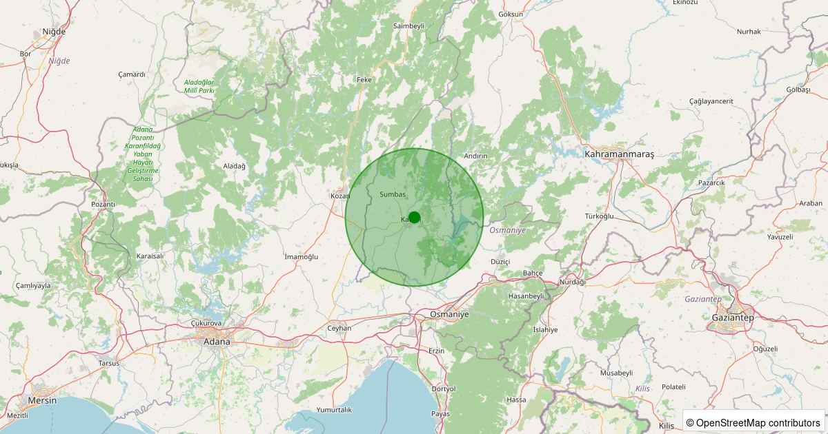 Son bir hafta içerisinde Osmaniye şehri Kadirli - Yeşiltepe noktasından 100 km yarıçap içerisinde toplamda 225 deprem kaydedilmiştir. Bu depremlerden en büyüğü 3.2 büyüklüğünde ve en sığ odaklısı 0.00 kilometre derinlikte gerçekleşmiştir.