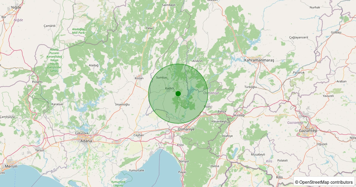 Son 7 gün içinde Kadirli - Çiğdemli Köyü noktasından 100 km yarıçap içerisinde meydana gelen diğer depremler: