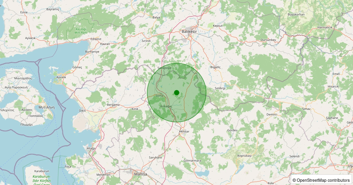Son 7 gün içinde Soma - Karacakaş noktasından 100 km yarıçap içerisinde meydana gelen diğer depremler: