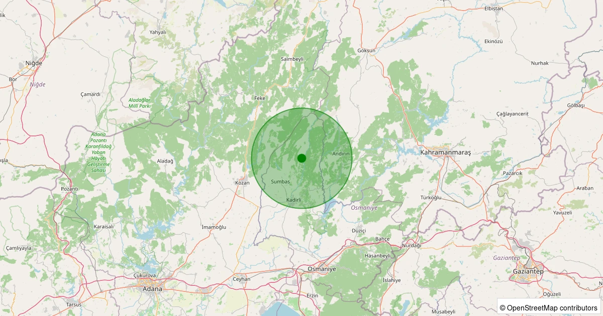 Son 7 gün içinde Kadirli - Kösepınarı Köyü noktasından 100 km yarıçap içerisinde meydana gelen diğer depremler: