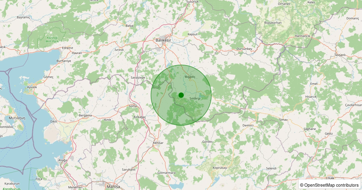 Son 7 gün içinde Sındırgı - Alacaatlı noktasından 100 km yarıçap içerisinde meydana gelen diğer depremler:
