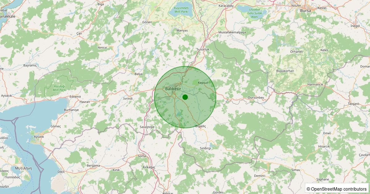 Son 7 gün içinde Altıeylül - Ovaköy noktasından 100 km yarıçap içerisinde meydana gelen diğer depremler:
