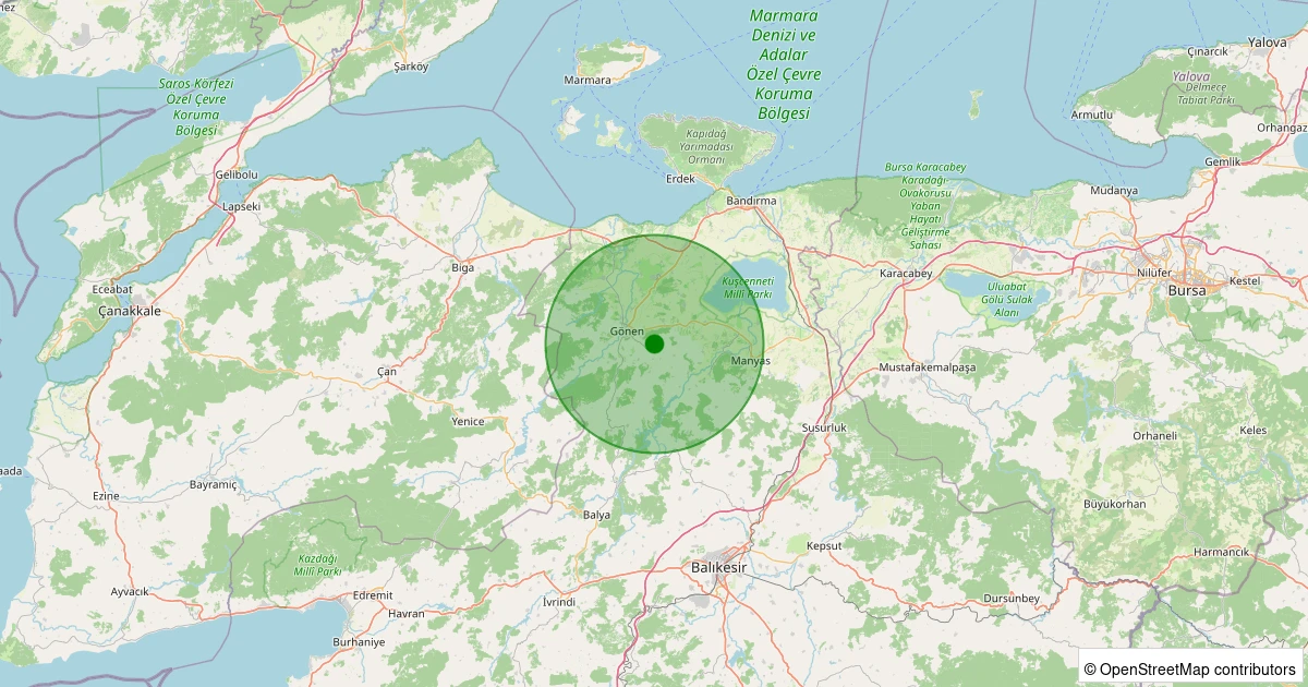 Son 7 gün içinde Gönen - Tütüncü noktasından 100 km yarıçap içerisinde meydana gelen diğer depremler: