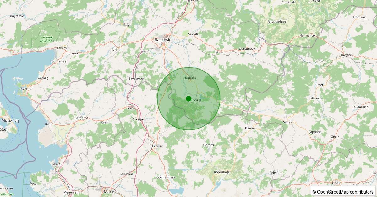 Kandilli üzerinden alınan ölçümlere göre Sındırgı - Karagür bölgesinde 20.04.2026 15:24 tarihinde gündüz saatlerinde 1.8 büyüklüğünde bir deprem meydana geldi.