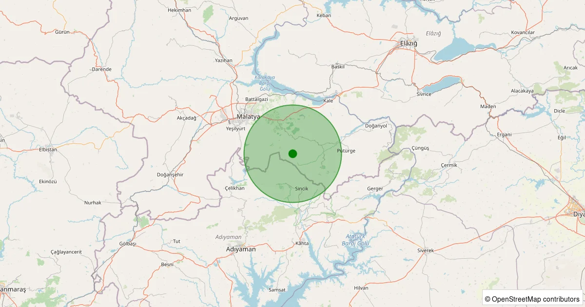 Son 7 gün içinde Battalgazi noktasından 100 km yarıçap içerisinde meydana gelen diğer depremler: