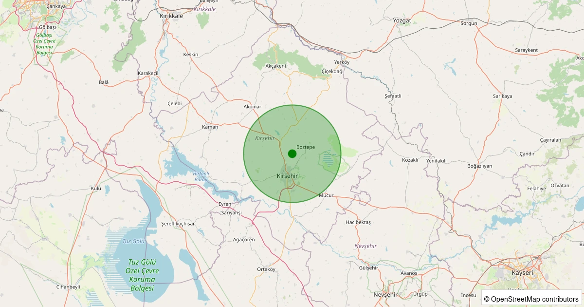 Son bir hafta içerisinde Kırşehir şehri Kırşehir noktasından 100 km yarıçap içerisinde toplamda 12 deprem kaydedilmiştir. Bu depremlerden en büyüğü 1.3 büyüklüğünde ve en sığ odaklısı 6.80 kilometre derinlikte gerçekleşmiştir.