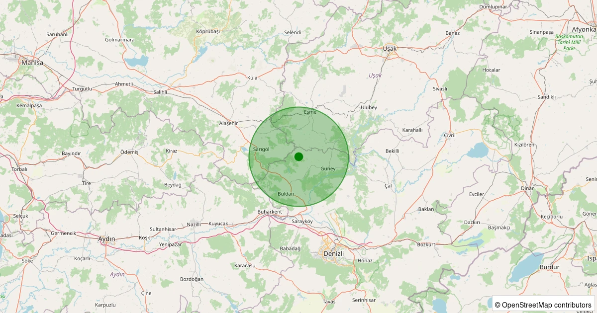 Son 7 gün içinde Buldan - Karaköy noktasından 100 km yarıçap içerisinde meydana gelen diğer depremler: