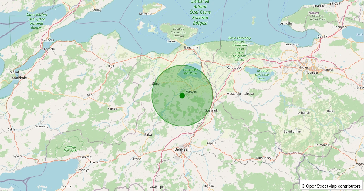 Son 7 gün içinde Manyas - Kubaş noktasından 100 km yarıçap içerisinde meydana gelen diğer depremler: