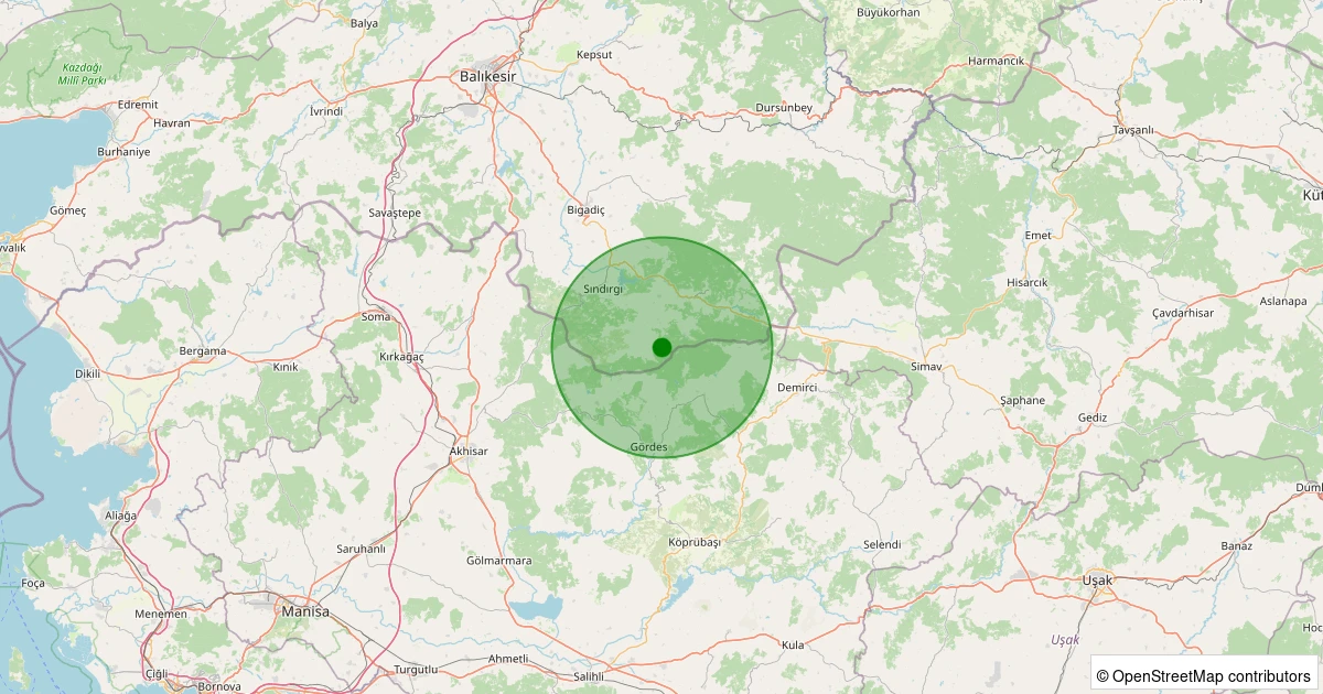 Son 7 gün içinde Sındırgı - Yüreğil/Merkez noktasından 100 km yarıçap içerisinde meydana gelen diğer depremler: