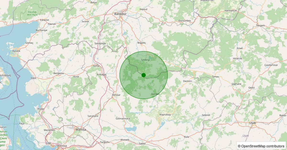 Son 7 gün içinde Sındırgı - Kınık noktasından 100 km yarıçap içerisinde meydana gelen diğer depremler: