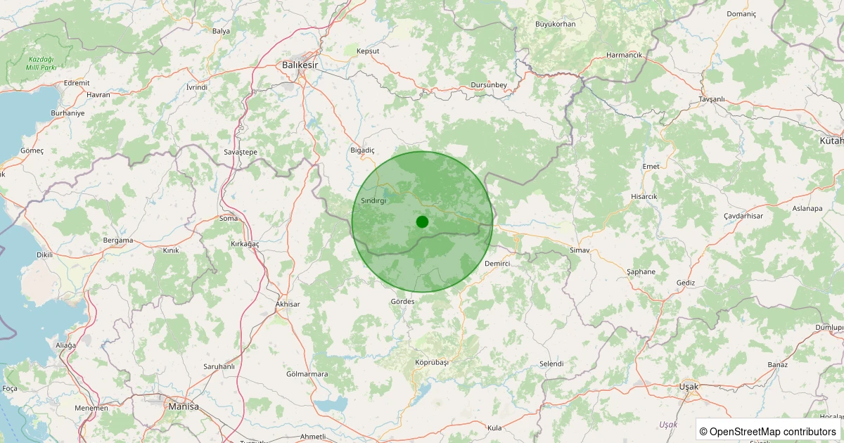 Son 7 gün içinde Sındırgı - Yaylabayır noktasından 100 km yarıçap içerisinde meydana gelen diğer depremler:
