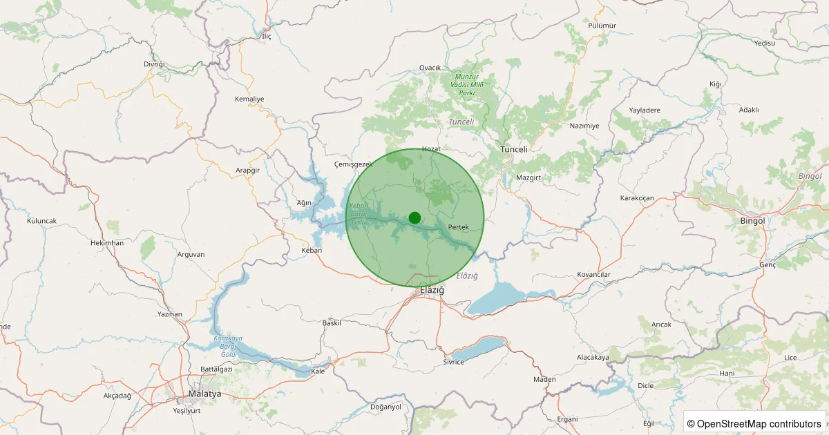 Son 7 gün içinde Pertek - Ballıdut Köyü noktasından 100 km yarıçap içerisinde meydana gelen diğer depremler: