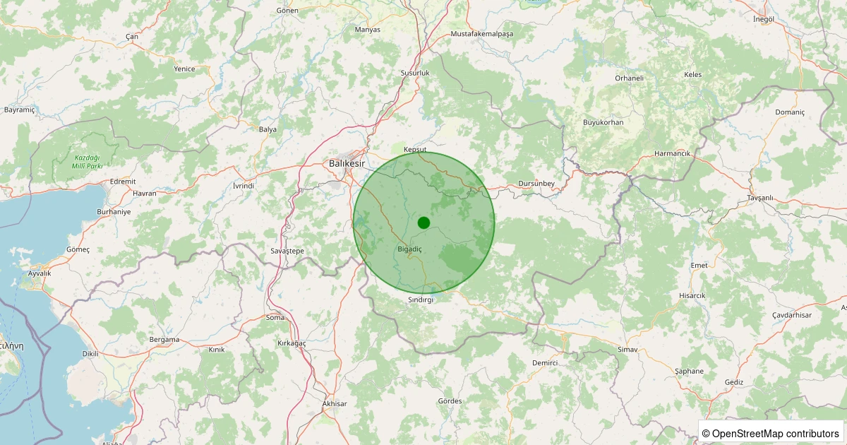 Son bir hafta içerisinde Balıkesir şehri Bigadiç - Çamköy noktasından 100 km yarıçap içerisinde toplamda 1360 deprem kaydedilmiştir. Bu depremlerden en büyüğü 3.7 büyüklüğünde ve en sığ odaklısı 0.00 kilometre derinlikte gerçekleşmiştir.