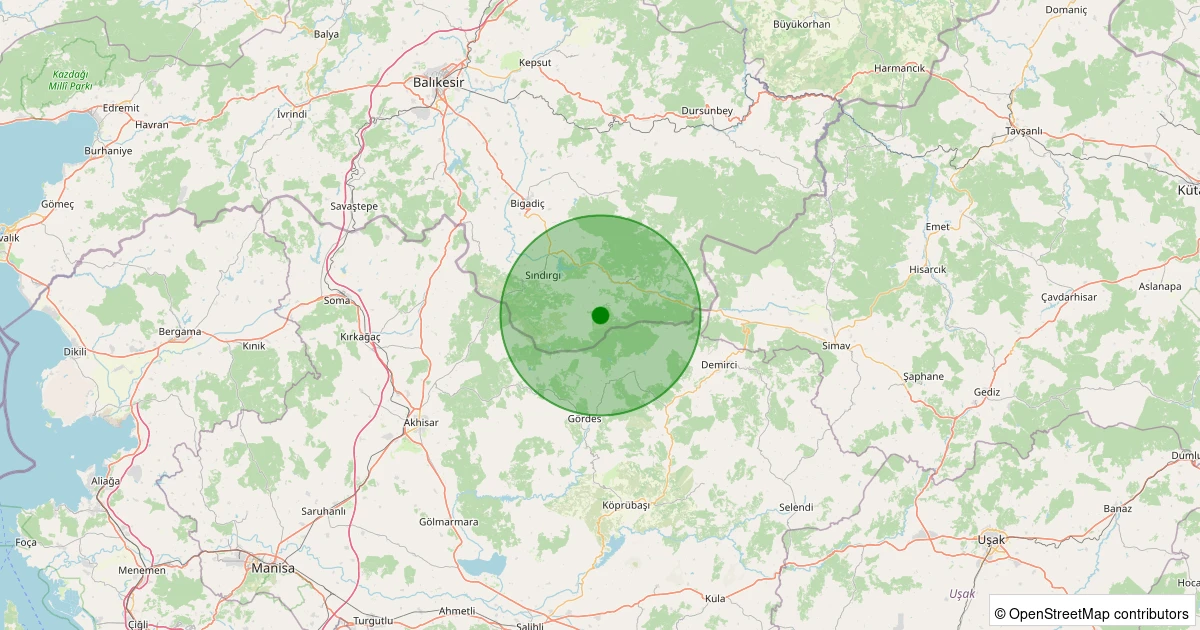 Son 7 gün içinde Sındırgı - Küçükdağdere noktasından 100 km yarıçap içerisinde meydana gelen diğer depremler: