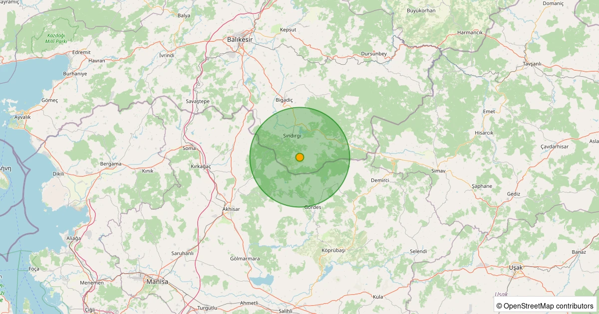 Son 7 gün içinde Sındırgı - Aktaş noktasından 100 km yarıçap içerisinde meydana gelen diğer depremler:
