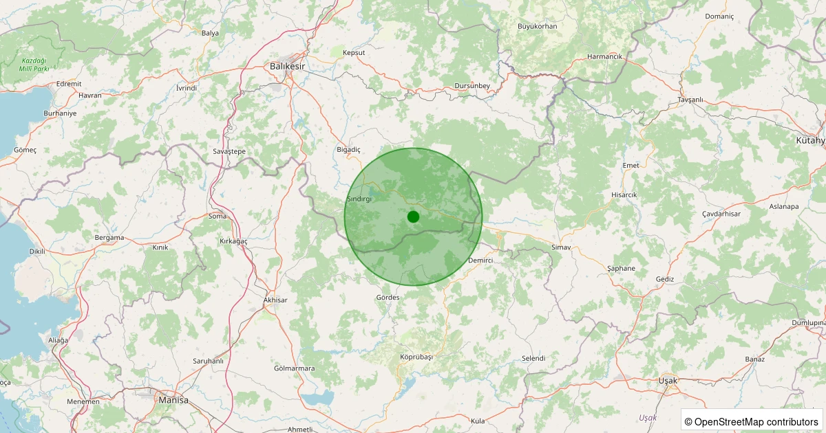 Son 7 gün içinde Sındırgı - Yaylabayır noktasından 100 km yarıçap içerisinde meydana gelen diğer depremler: