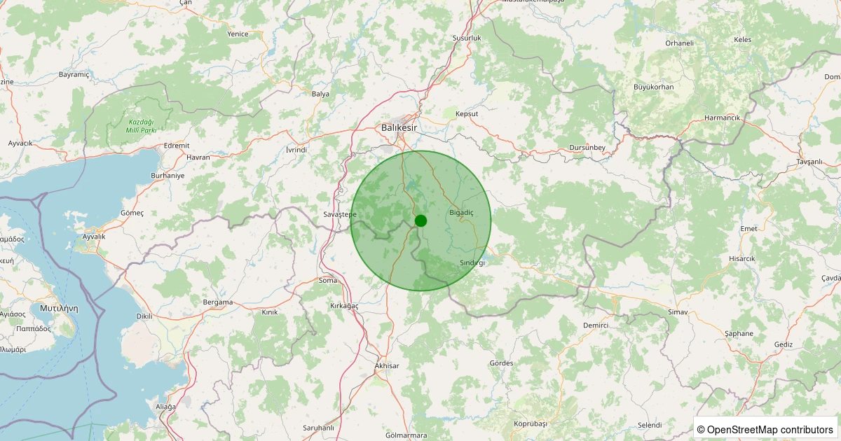 Son 7 gün içinde Sındırgı - Gölcük noktasından 100 km yarıçap içerisinde meydana gelen diğer depremler: