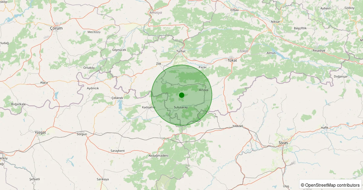 Son 7 gün içinde Artova - Devecikarkın Köyü noktasından 100 km yarıçap içerisinde meydana gelen diğer depremler: