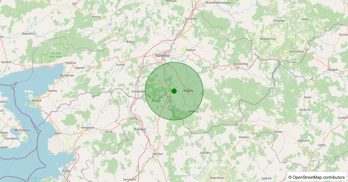 Son 7 gün içinde Bigadiç - Çayüstü noktasından 100 km yarıçap içerisinde meydana gelen diğer depremler: