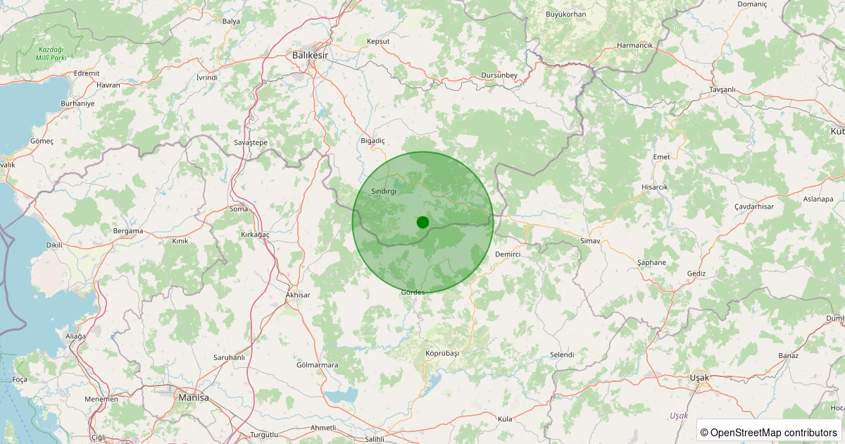 Son 7 gün içinde Sındırgı - Küçükdağdere noktasından 100 km yarıçap içerisinde meydana gelen diğer depremler: