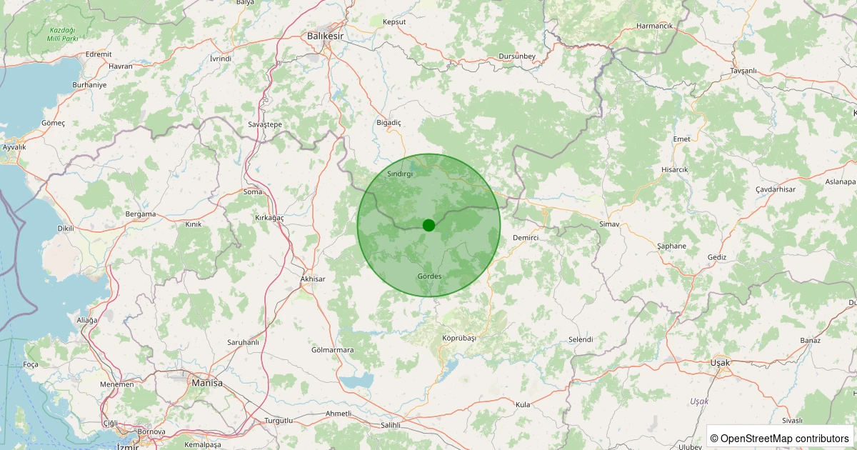 Son 7 gün içinde Sındırgı - Yüreğil/Merkez noktasından 100 km yarıçap içerisinde meydana gelen diğer depremler: